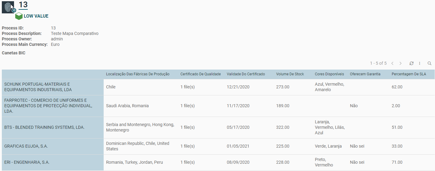The Comparison Map was integrated in the SourcingFlowDoc's Recap Pageview. The Identifier for the Questionnaire Answers is the name of the supplier.