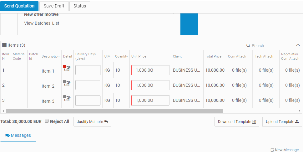 Entering the Negotiation Phase will show the answers sent from the last First Offer, similarly to what happens to the QuotationReceiverDoc.
