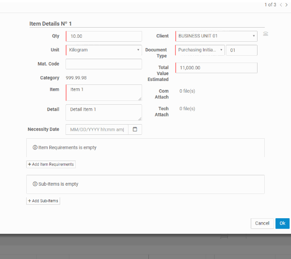 The following is an usage example of the Questionnaire Configurer integrated in the SourcingFlowDoc: